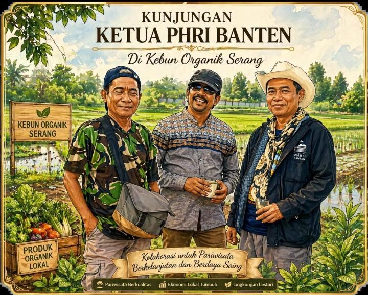 Ketua PHRI Banten melakukan kunjungan santai dan penuh keakraban ke kawasan kebun dan persawahan organik di wilayah Cipocok Jaya, Sabtu (26/4/2026). Kegiatan ini menjadi bagian dari dukungan terhadap pengembangan pertanian ramah lingkungan dan pemberdayaan petani lokal di tengah pesatnya pembangunan kawasan perkotaan di Kota Serang.